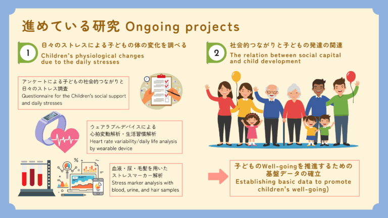 また、そんな体の反応が、自分を支えてくれる人々との出会いや、日々の出来事の中でどう変わっていくのかについても研究し、子どもたちが幸せに生きるために何ができるのか、皆さんと一緒に考えていきます。