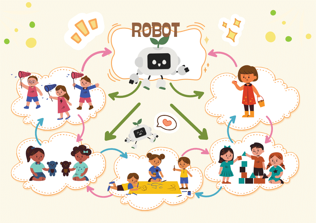 この研究では、特に子どもの社会的つながり(社会関係資本)に注目し、子どもの社会的つながりを充実させるためにロボットにどのような機能があるとよいかをさまざまな調査を通じて明らかにします。同時に、ロボットを活用する際の注意点についても検討していきます。